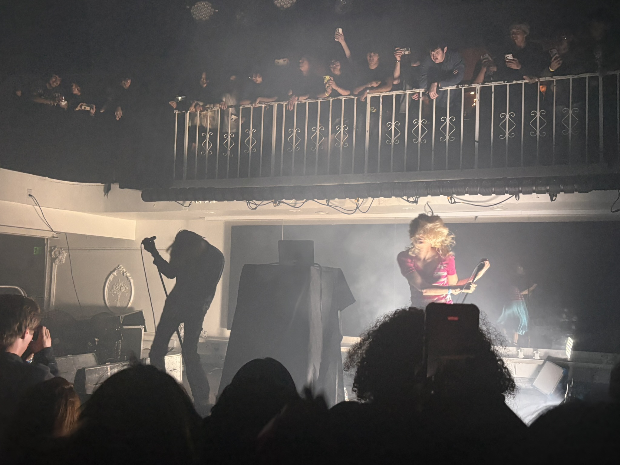 They played most of the songs they’ve released, as well as two new songs, which maintained their unique sound while also branching into new territory that I look forward to them exploring more. Before I could even register how much time had passed, they played their last song and quietly exited the stage, after performing for a mere 45 minutes. The crowd called for an encore, but they had already disappeared behind the curtain. This was likely just due to their limited discography being such a new group, but it added to their air of mystery. After the show I sat on the curb outside the club with my friend, watching the crowd disperse, in genuine awe of what I just experienced. In a world that feels dictated by artificiality, ear has created a feeling of authenticity in their music, grounding you in ways that other electronic artists don’t, by masterfully blending physical and synthetic instrumentation. I’d argue that the rawness of their sound is the future of electronic music. I can’t wait to see them again.